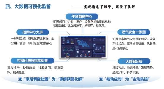 運(yùn)用物聯(lián)網(wǎng)、人工智能、大數(shù)據(jù)等高新技術(shù),為政府統(tǒng)一構(gòu)建“全域燃?xì)獍踩O(jiān)管總平臺”。